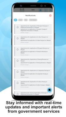 Currently the app offers information about government services, allow users to apply, manage applications and get notifications on the latest government services.