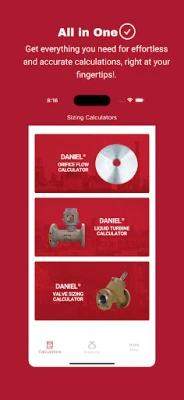 - Fast and precise calculations - Extensive Daniel product database - Intuitive interface - Save time and resources - Send Request to Experts - Save yours meter calculation - Export to CSV and PDF via email