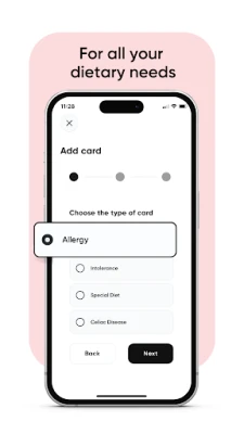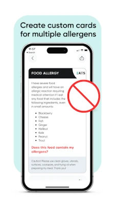 • Personalized Allergy Cards – Create custom allergy cards tailored to your specific dietary needs, including allergies, intolerances, or other restrictions.