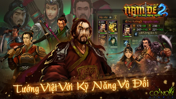 ✔Hàng trăm vị tướng Việt: với chỉ số đa dạng phù hợp cho một game chiến thuật, quản lý có chiều sâu.